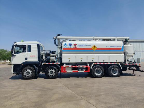 为了满足不同用户的个性化需求,该混装车可以设计成整体式结构和分体式结构,其中分体式结构的气力输送系统可与用户自有的铵油炸药输送系统无缝对接、配套使用,最终为用户带来了方便快捷的使用体验和生产成本的降低。
