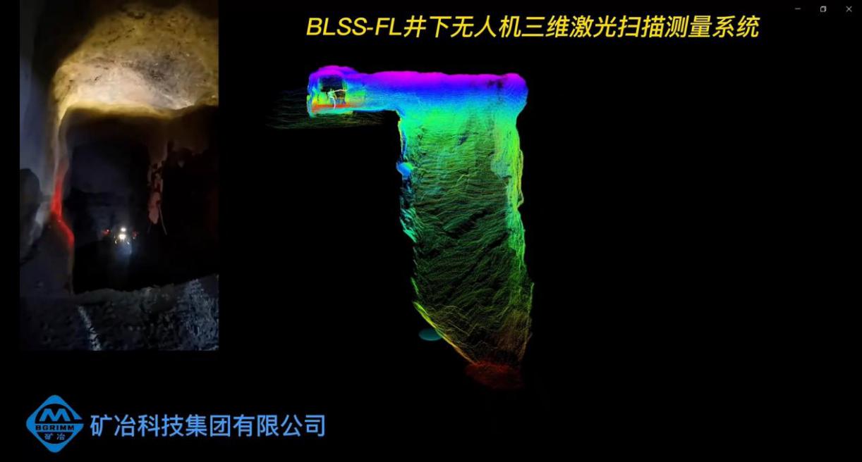 BLSS-FL井下无人机三维激光扫描探测系统,针对地下矿山三维空间数据获取的急迫需求,尤其是采空区三维空间数据获取的难题,突破复合运动条件下激光点云畸变去除、无GNSS信号环境下自主定位和建图、狭窄空间下无人机飞行增稳和避障等多项关键技术,可在无卫星导航信号情况下自主避障和探测,动态获取地下矿山被测区域的精细三维点云数据,可有效用于采矿作业的超爆欠爆定量评价、井巷工程及采场验收、矿石资源损失贫化分析、保有资源计算、溜井与井巷工程治理和数字矿山建设等方面,填补国内空白。仪器通过了中国计量科学研究院计量认证,在国内多家矿山企业进行了应用验证,具备多场景、快速、实时、安全地获取地下矿山三维空间形态的能力,标志着我国地下三维空间形态探测技术跨入新时代。