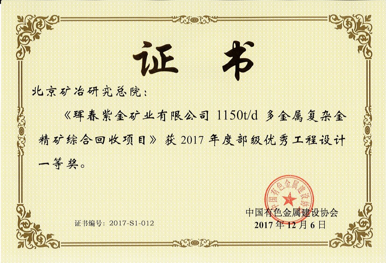 珲春紫金矿业有限公司1150td多金属复杂金精矿综合回收项目